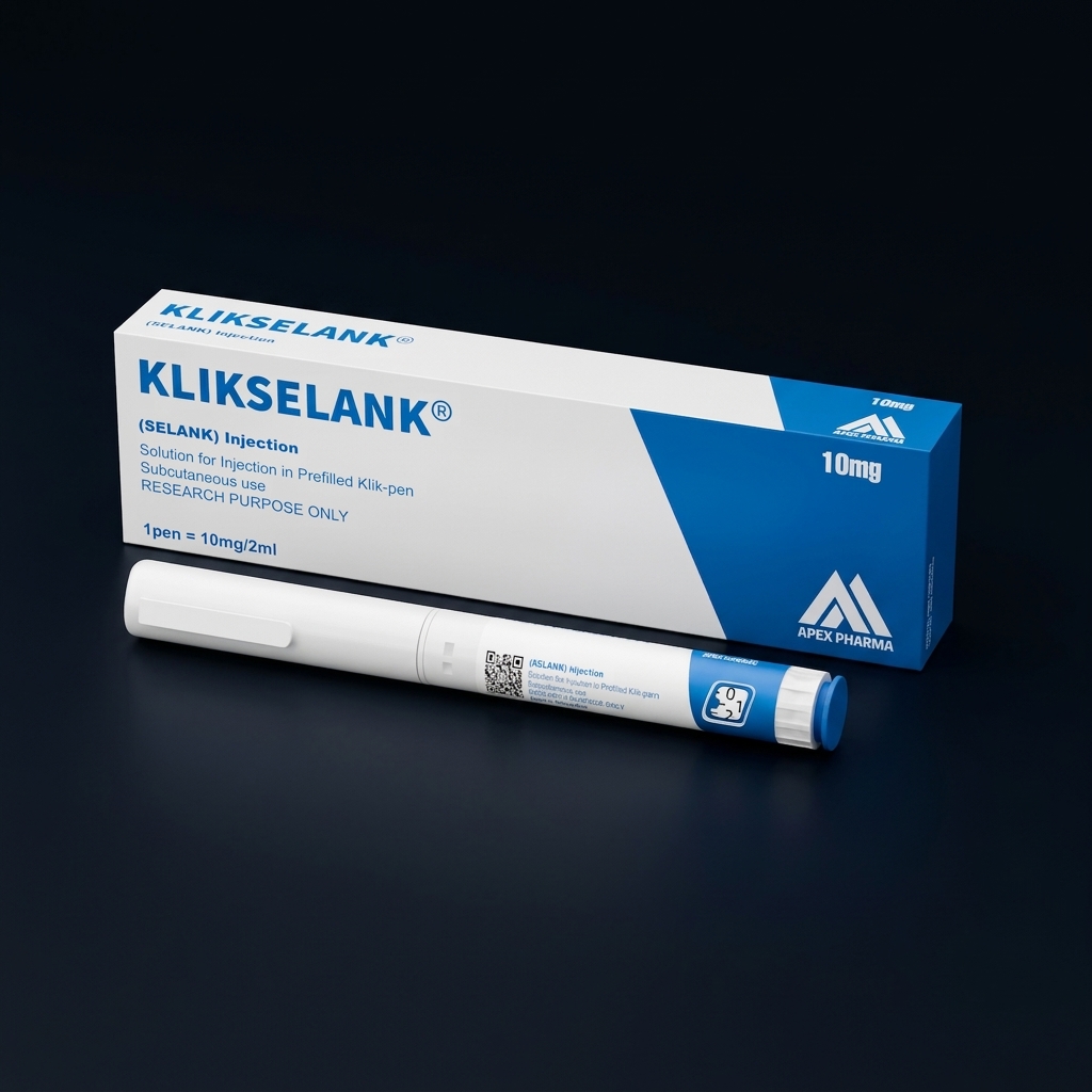 KLIKSELANK contains Selank, a heptapeptide (Thr-Lys-Pro-Arg-Pro-Gly-Pro) that is a synthetic analogue of tuftsin with a Pro-Gly-Pro sequence attached. Each pen contains 10mg/2ml. Developed at the Institute of Molecular Genetics of the Russian Academy of Sciences, research suggests it may modulate the expression of brain-derived neurotrophic factor (BDNF), influence IL-6 expression, and interact with GABA-ergic systems. It has anxiolytic properties without sedative or addictive effects.